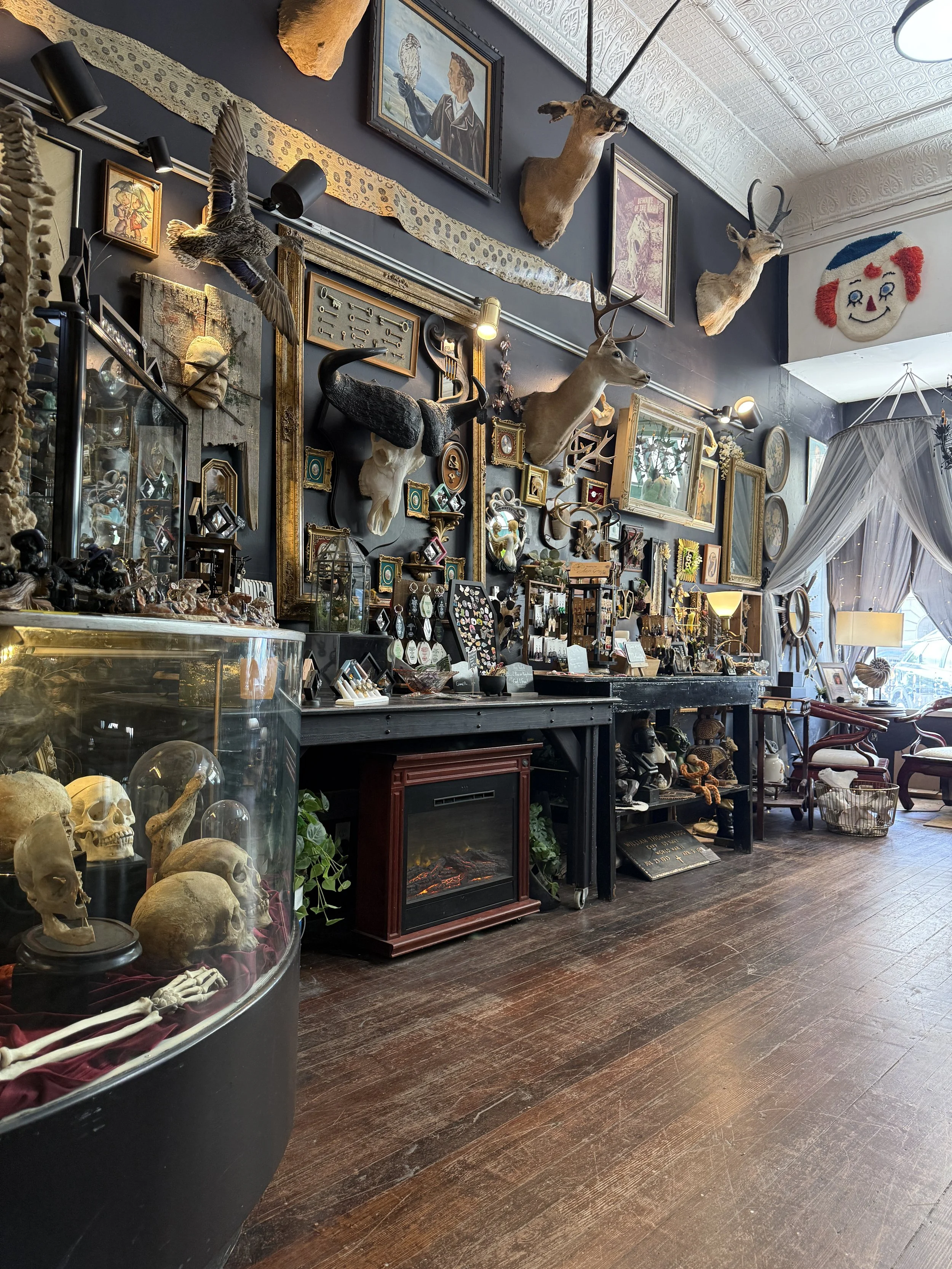 Since 2021, The Downtown Oddities Parlor in Northern Colorado has been the go-to spot for unique antiques and oddities. We specialize in one-of-a-kind treasures—from the macabre to the quirky—that you won’t find anywhere else. Our ever-changing collection includes vintage curiosities, spooky artifacts, and strange collectibles, offering a shopping experience that’s as memorable as it is mysterious.